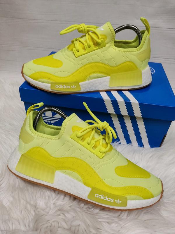 Adidas Nmd_R1 Yellow GZ7963 Оригинальный, очень удобные и легкие Вдохновленные сияющими блестящими неоновыми огнями большого города, они имеют УФ-реактивные детали, которые поглощают солнечный свет, так что вы можете носить их с собой еще долго после заката.