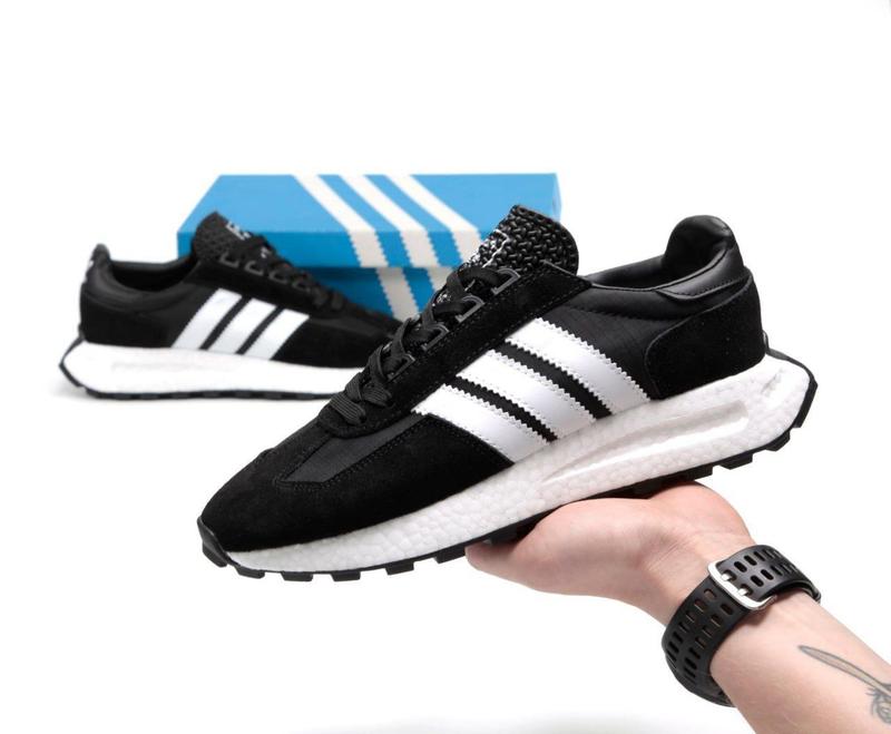 Кросівки Adidas Retropy E5 АРТ: 14245 Розміри: 41-45 ↘️ Опис: Дуже легкі та зручні кросівки для занять спортом або щоденного використання. Основні місця, на які припадає навантаження (носок і пятки), зроблені із міцної натуральної замші, яка стійка до подряпин та згинання. Також зверху використовується сіточка для виведення вологи і надлишкового тепла. Підошва із м'якої піни, що захищена знизу резиновим протектором. - Верх: Замша, текстиль - Підошва: Піна - Підкладка: Текстиль - Колір: Чорний - Сезон: весна, літо - Виробник: В'єтнам - Комплект: Взуття, коробка