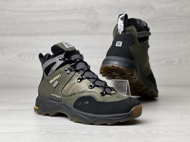 Спортивные кожаные ботинки, кроссовки термо salomon contagrip gore-tex olive