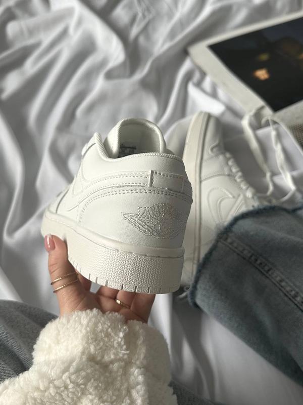 Ох, Nike Air Jordan 1 Low White - чиста класика серед кросівок! Ця універсальна пара вже багато років є фаворитом серед любителів взуття за її простий та стильний дизайн. Давайте розберемо детальніше, чому вона така особлива: Універсальна біла палітра: Верх виконаний з білої шкіри, що робить його ідеальним для поєднання з будь-яким вбранням. Ця нейтральність дозволяє їм вписатися в будь-який стиль, від спортивного до елегантного. Біла підошва та білий Swoosh доповнюють білосніжний образ, створюючи чистий та мінімалістичний вигляд. Ікона баскетбольного стилю: Air Jordan 1 Low є низькою версією легендарної Air Jordan 1, створеної Майклом Джорданом в 1985 році. Їхній дизайн натхненний баскетболом, але вони стали популярними за межами корту, перетворившись на модний must-have. Нося ці кросівки, ви відчуваєте зв'язок з історією та спадщиною баскетбольного стилю. Висока якість та комфорт: Nike Air Jordan 1 Low виготовлені з високоякісної шкіри, що забезпечує міцність та довговічність. Підошва з гуми з малюнком "вафелька" гарантує відмінне зчеплення на будь-якій поверхні. Амортизація Air забезпечує комфорт протягом усього дня, як на вулицях міста, так і на баскетбольному майданчику.