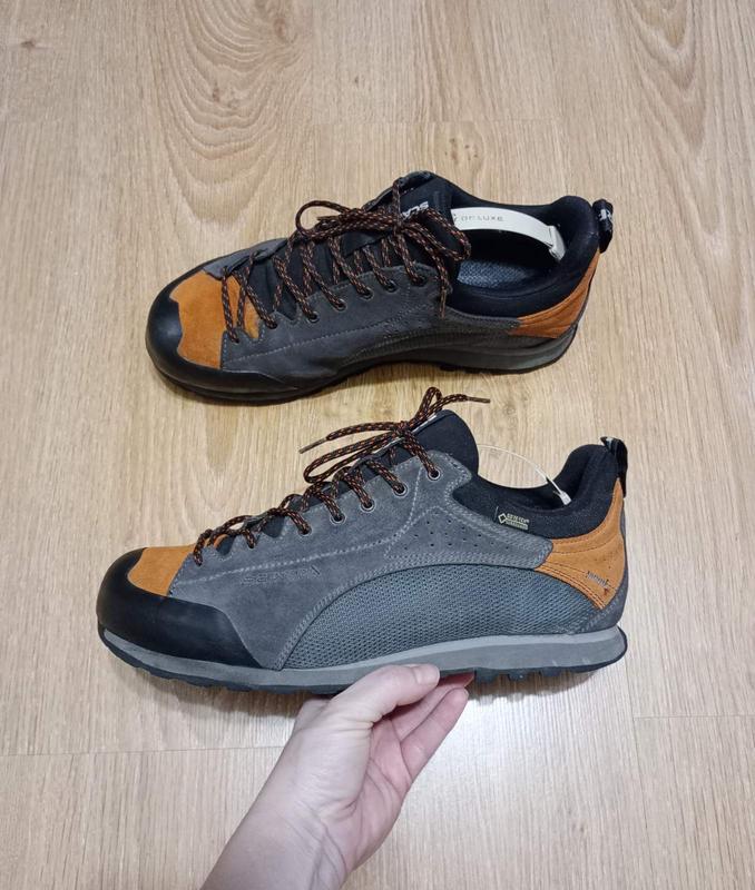 Треккинговые кроссовки в очень хорошем состоянии. На мембране gore-tex, поэтому водонепроницаемые и удерживают тепло. На последнем фото виден единственный нюанс. Длина стельки до сгиба 27,5см.