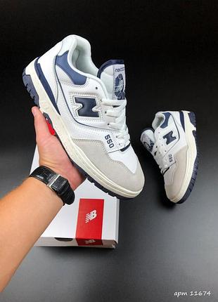 артикул 11674 білі із темно синім сезон: демісезонні виробник: В'єтнам модель: New Balance 550 розміри: 41 42 43 44 45 матеріал: прес шкіра, підошва резина, прошиті