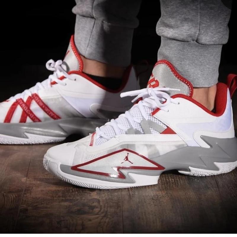 Jordan Westbrook One Take 3 “Fire Red” DC7701-100. Модель Jordan Westbrook One Take III имеет полностью белый верх с серебристыми оттенками. Этот силуэт известен своими нетрадиционными узорами и геометрической графикой, которые сливаются здесь с полностью белым экстерьером. Яркие «огненно-красные» акценты выводят обувь на новый уровень, поскольку они появляются на подкладке лодыжки, передней части стопы и проушинах. Чтобы объединить все, кроссовки дополнены красной маркировкой Jumpman на язычке пятки и красной маркировкой Westbrook на язычке.