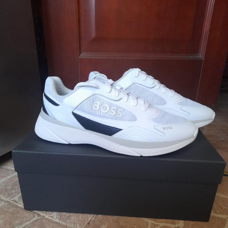 Кроссовки из коллекции BOSS 50487577.100 Модель выполнена из сочетания текстильного и синтетического материала. - Круглый, мягкий носок. - Резиновая подошва. - Слегка уплотненный задник. - Модель со шнуровкой. - Текстильная внутренняя часть. - Длина стельки составляет: 26см Состав: Голенища: Синтетический материал, Текстильный материал Внутренняя часть: Текстильный материал Подошва: Синтетический материал без торгу