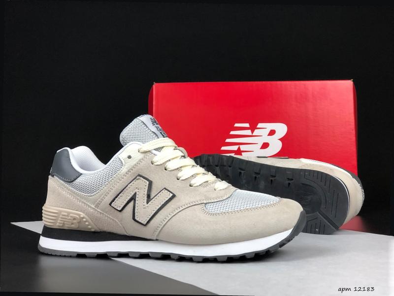 артикул 12183 бежеві ( отримали 4 ящика ) сезон: демісезонні виробник: В`єтнам модель: New Balance 574 розміри: 41 42 43 44 45 матеріал: замш, сітка, підошва пінка