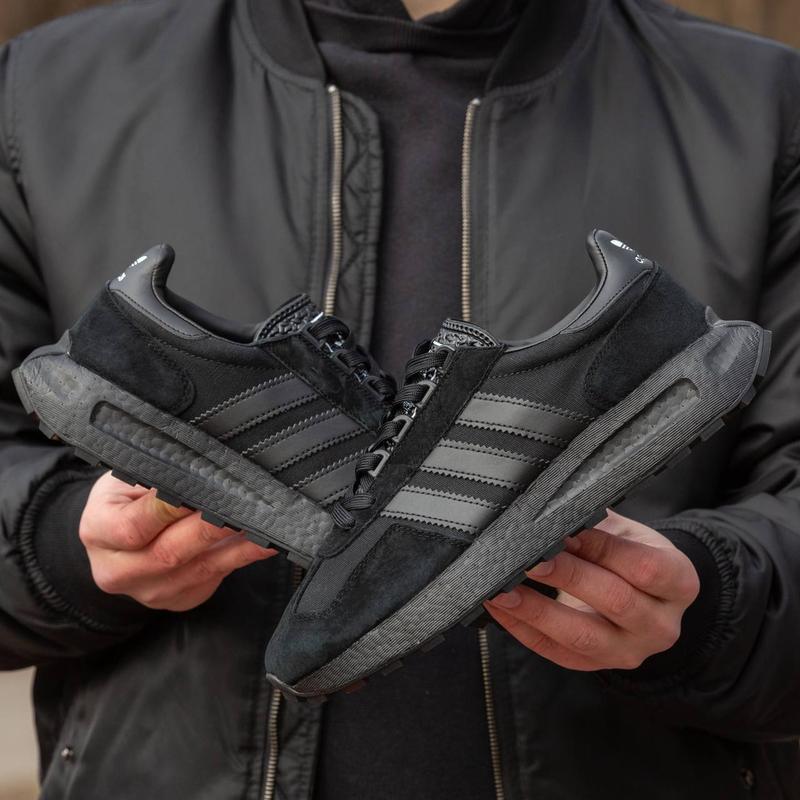 Adidas Retropy E5 All Black Цена : 2700 Производитель: Вьетнам. Размер по сетке: 40-45 Материал: Замша, Текстиль. Подошва: Мягкая пена, резиновый протектор. Коробка: Adidas, Пергамент.