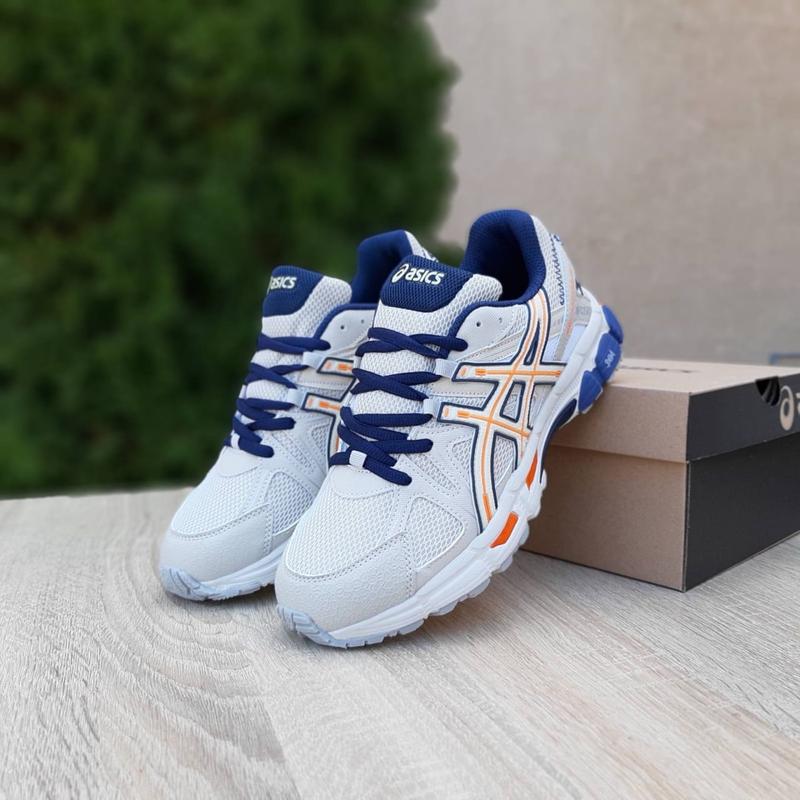 арт 11227 Asics бежеві з синім та помаранчевим Виробник В'єтнам, якість ТОП Верх комбіновані матеріали, підошва гума Розміри 41-45 маломірять !!! 41й(25,5см), 42й(26см), 43й(26,5см), 44й(27см), 45й(27.5см)