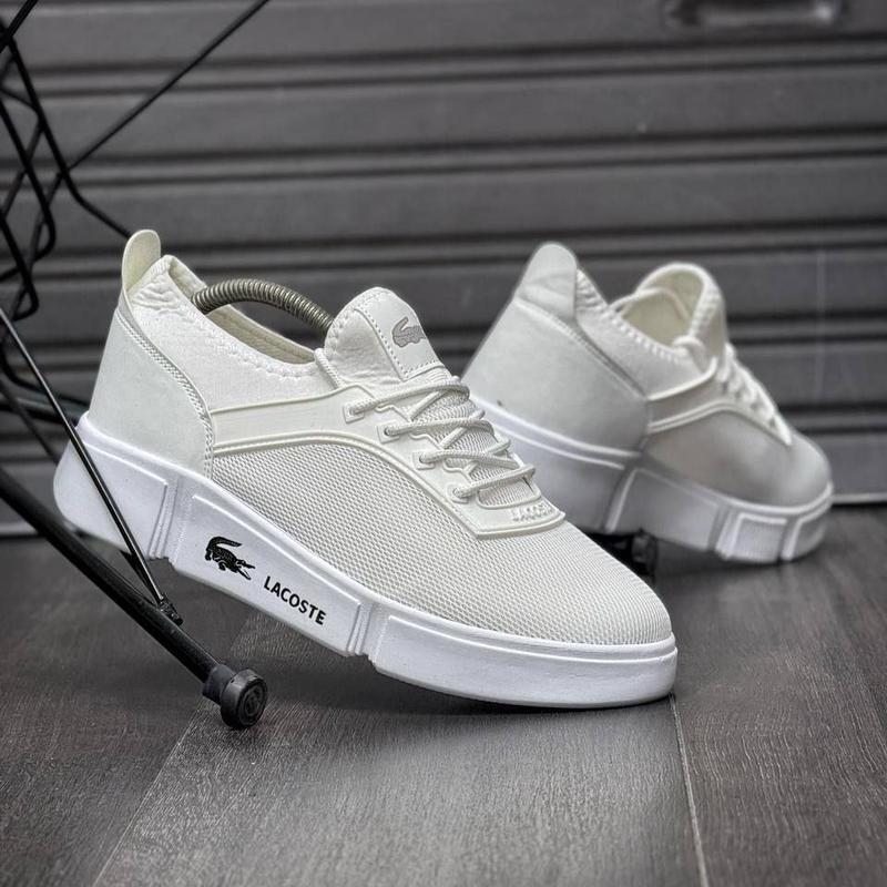 Мужская обувь Lacoste White Несомненный хит продаж, лучшая обувь на теплые времена года (весна, лето, осень). Чрезвычайно легкие, дарят комфорт и удовольствие при повседневном использовании. Благодаря ФИКСУЮЧОМу ПОСКУ по всей длине, обувь, будто облегает стопу и придаёт еще большую уверенность при ходьбе! Материал: сетка, текстиль; подошва - износостойкая пена. Размеры: 40 (26,0 см), 41 (26,5 см), 42 (27,0 см), 43 (28,0 см), 44 (28,5 см) (полномерные) Комплект: коробка + брендовая бумага LC015