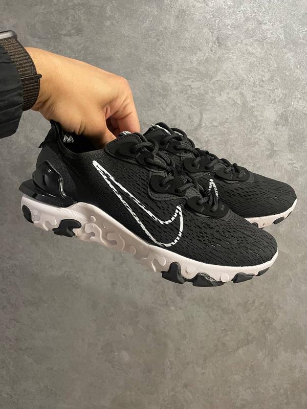 Nike React Vision Black/White Размер: 40-45 Материал текстиль Подошва пена. Производитель Вьетнам. Комплект: nike коробка, брендированная крафт. бумага.