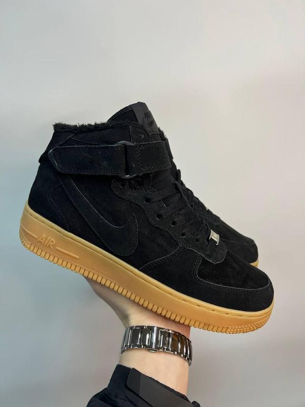 Мужские кроссовки nike air force 1 high черные теплые замшевые кеды найк аир форс зимняя с...
