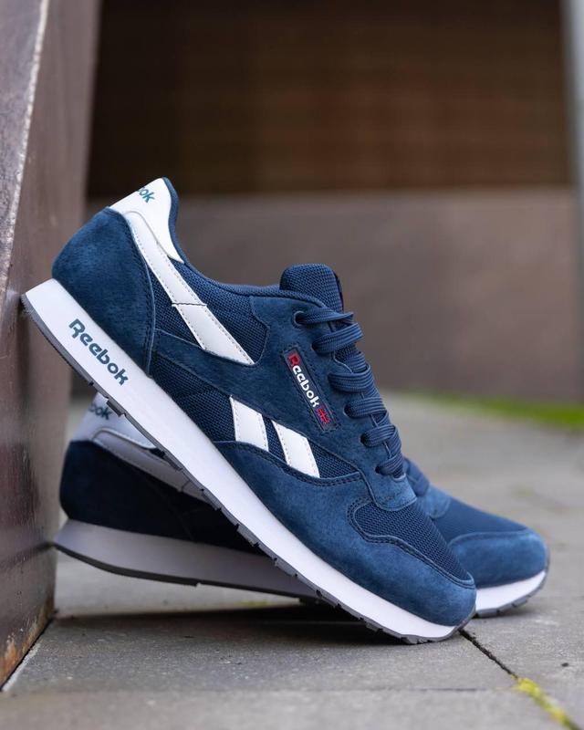 Мужские кроссовки кожаные синие reebok classic leather демисезонные кроссы рибок замвшевая...