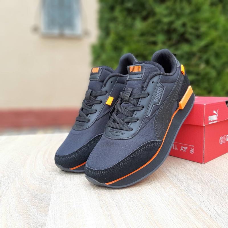 10664 артикул Рuма черные с оранжевым производитель Вьетнам Верх: Замша плотная ткань, Подошва пена Размеры 41й (26см), 43й (27,5 см), 44й (28см), 45й(28,5 см)