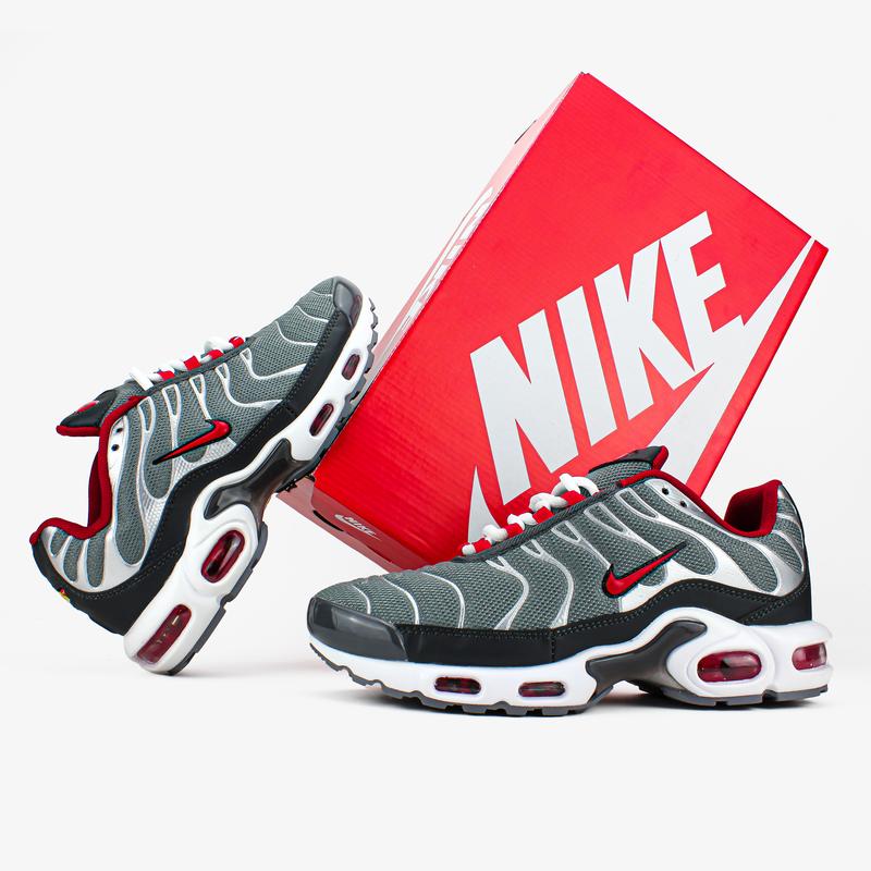 517kibor Nike Air Max TN Plus "Grey Red" Производитель: Вьетнам Размеры: 41-45 Материал: Текстиль+Кожа Оплата наложена платеж Новая почта