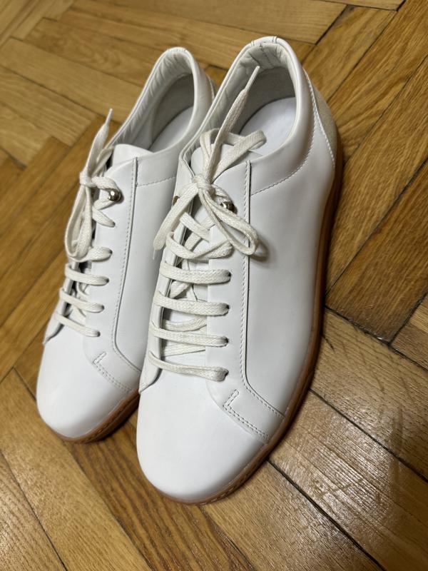 Кросівки білі, підошва бежево-коричнева Повністю шкіра ( зовні і всередині) 43 розмір