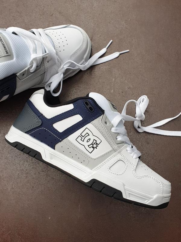 #526-4#kros DC Stag White Grey Blue • Матриал: кожу • Подошва: резина Белая коробка Размеры: • 41-26 см • 42-26,5 см • 43-27,5 см • 44-28 см • 45-29 см Оплата при получении товара на начете