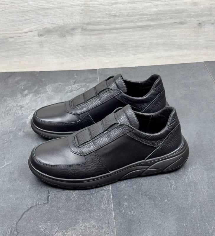 Чоловічі шкіряні кросівки на резинці Код: 2015 чорний Сезон: весна-осінь Тип: кросівки Стать: чоловіча Колір: чорний Верх: натуральна шкіра Середина: взуттєвий текстиль Підошва: термополіуретан Стиль: повсякденний Розміри: 40,41,42,43,44,45 40-(26 см) 41-(27 см) 42-(28 см) 43-(28,5 см) 44-(29 см) 45-(30 см)