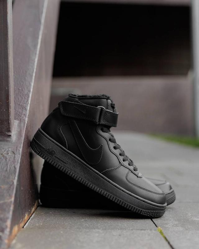 Мужские кроссовки кожаные на меху nike air force high черные зимние ботинки найк айр форс...
