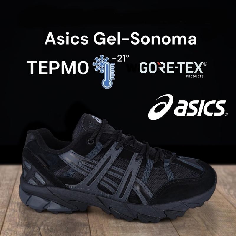 артикул 12426 черные сезон: осень\зима, термо ❄️ производитель: Вьетнам (не указано) модель: Asics Gel Sonoma размеры: 41 42 43 44 45 46 материал: не промокаемая термоплащевка, замш, подошва.