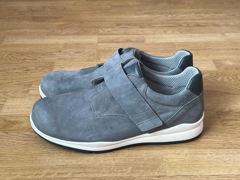 Указан 13 размер. Идут на 48. Стелька до сгиба на пятку 32см, от края до края 32,5см. Ширина стельки 10,5см. Верх - натуральная кожа нубук, внутри текстиль. На широкую ногу. Подъем регулируется липучкой. Стелька мягкая. Идеальное состояние, без дефектов.