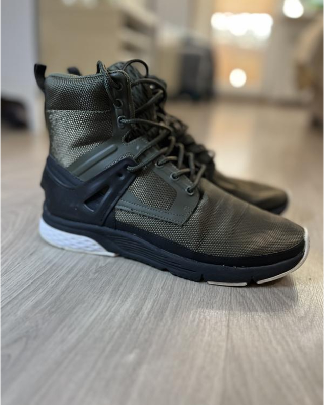 Нейлоновые высокие кроссовки H&M со шнуровкой спереди, мягкая часть лодыжки с петлей сзади и мягкий язычок из большой сетки. Сетчатая подкладка, сетчатые стельки, резиновые подошвы.