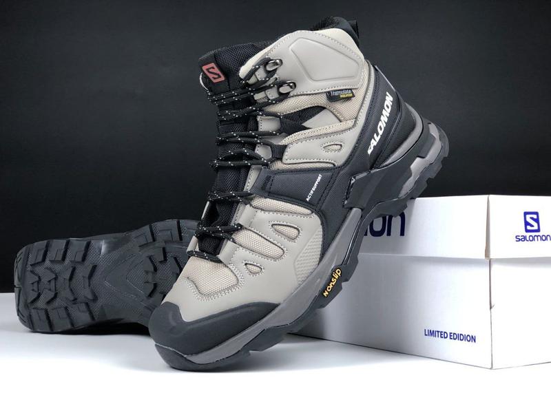 р.41-46 Кросівки Salomon X Ultra 4 Mid Wide GTX (бежево/чорні) зима артикул.: KS 12435 42-273 см 44-285 см, Упаковані в коробку Матеріал: Термоплащівка (не промокає)/Нубук/Мех штучний/Підошва піна (носок і п'ята посилені) Виробник: В'єтнам