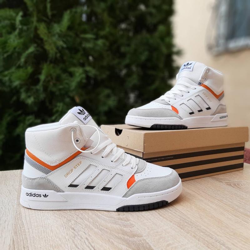 Adidas Drop Step Mid FUR белые с серым и оранжевым производство Вьетнам, качество ТОП (лицензия) Верх: кожа/замша, внутри мех цигейка, подошва резина Размеры 41-46 41й(26см), 42й(26,5см), 43й(27,5см), 44й(28см), 45й(28,5см), 46й(29см)