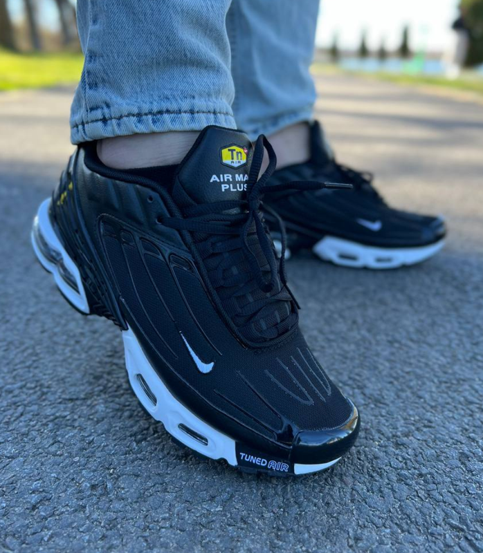 Air Max Plus 3 Black👟 ⚒️Матеріал: верх текстильний з синтетичними хвилями, з шкіряними вставками, повністю прошиті, без клею👌 ⚙️Підошва: секційні балони Air Max для кращого згинання, устілка текстильна, приємна на дотик ✅ 🏭Виробник: Made in Vietnam 🇻🇳 🌄Сезон: Весна🌹, Літо☀️Осінь🌻 📏Розмірна сітка: 40(25.5см) 41(26см) 42)(26.5см) 43(27.5см) 44(28см) 45(29см) 🎁Ідуть з коробкою, папір, комплект stock X, пакет🎗️ Артикул: R712