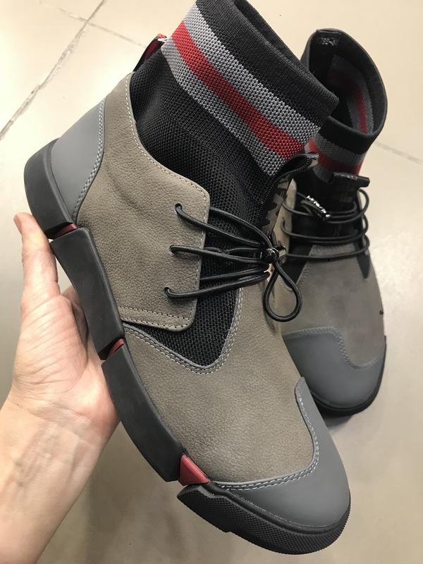 Стильные мужские ботинки известного бренда Выполнены из кожи, нубука и текстиля Застежка шнуровка-резинка Размер один. Фабрично вказано 40. Стелька 26 см