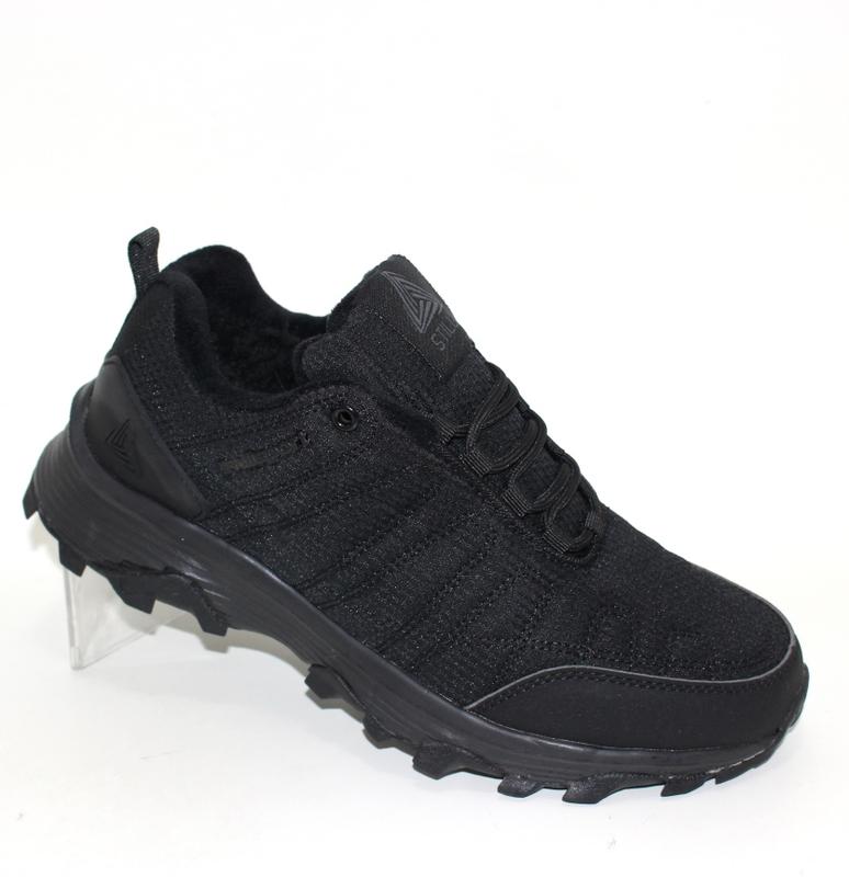 Черные мужские зимние термо кроссовки с мехом, чепкая подошва с протектором, мужская обувь...
