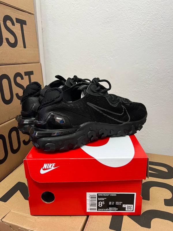 Nike react vision full black Люкс качество, Китай QR код сканируется и ведет на оригинальный сайт ▪️Идут в оригинальных коробках ▪️Материал: текстиль, кожа ▪️Подошва: резина,пена