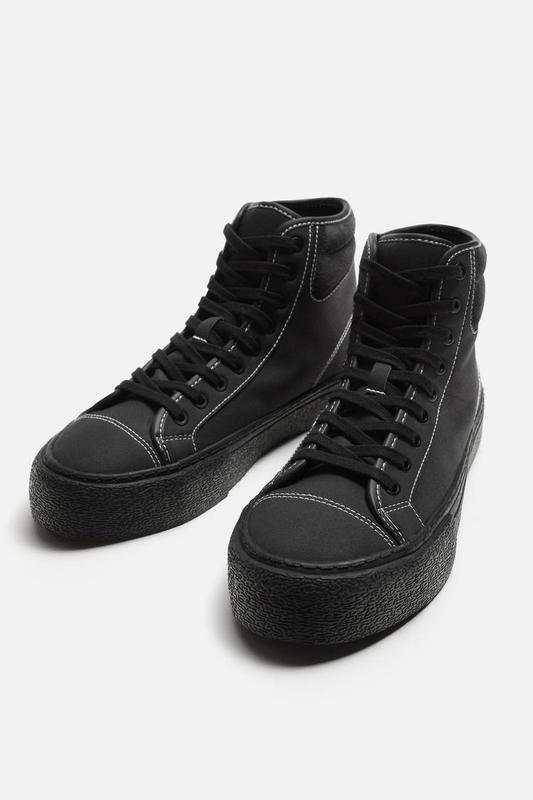 Цена 1550 📌olena__beley📌 Booty кроссовки. Верхняя часть с деталями швов и деталью каблука из кожи с раздельной отделкой. Шнур с девятью проходами. Подошва с объемом и неровной отделкой. Черный | 2112/420/800