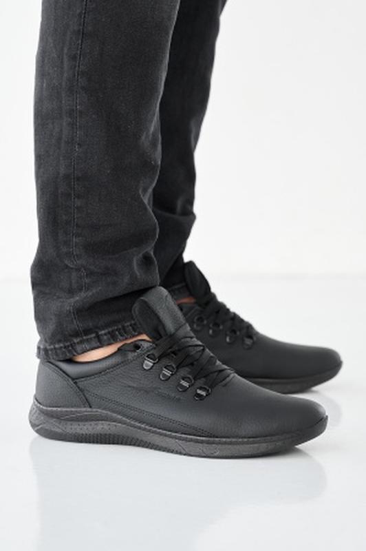 Мужские кроссовки кожаные весенне-осенние черные Yavgor 02