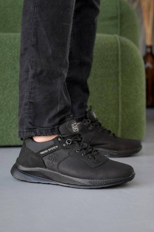 Мужские кроссовки кожаные весенне-осенние черные Splinter 0823