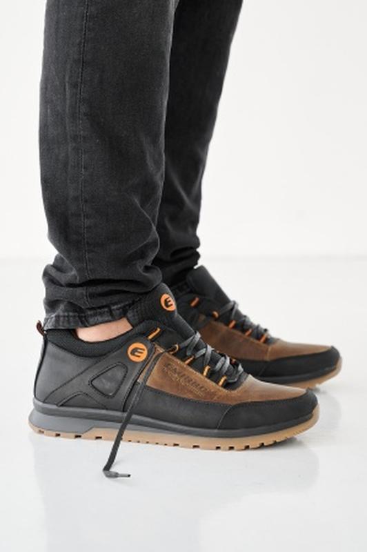 Мужские кроссовки кожаные весенне-осенние черные-оливковые Emiro М8