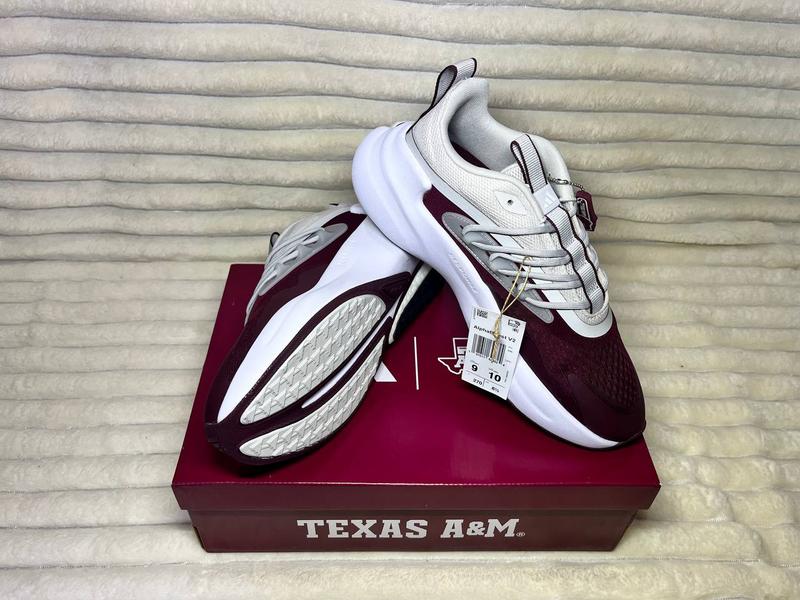 Оригинальные кроссовки Adidas Texas A&M Alphast V2 Покажите свой аггивский дух с Texas A&M Alphast V2 – стильными и функциональными кроссовками, созданными для тех, кто ценит комфорт, производительность и преданность команде! Особенности модели: Амортизация Boost: Энергонная подошва для мягкого, упругого шага, идеальная для активной жизни. Дышащий верх: Легкая сетка обеспечивает комфорт и вентиляцию даже во время интенсивных тренировок. Культовый дизайн Texas A&M: Бордовые и белые акценты вместе с логотипом университета делают эти кроссовки символом гордости за свою команду. Повышенная поддержка: Усиленные детали обеспечивают стабильность для бега, тренировок и прогулок. Легкость конструкции: Подходит для длительного ношения без ощущения усталости. Для кого: Студентов и Выпусков Texas A&M, которые хотят носить символы своей альма-матер с гордостью. Спортсменов и активных людей, которые ищут стильную и продуктивную обувь. Тех, кто любит сочетание классического дизайна и инновационных технологий. С Texas A&M Alphaboost V2 каждый ваш шаг будет комфортным, стильным и полным аггивской энергии! Доступные размеры: 42 / 43
