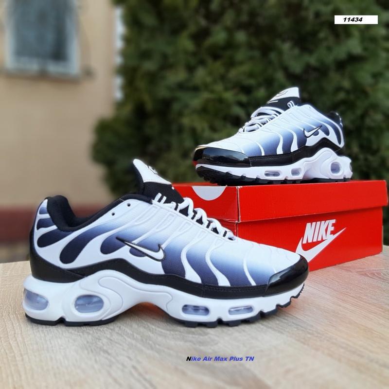 ‼️внимание НОВЫЙ товар!!️мужские 11434 артикул Nike Air Max Plus TN белые с черным производство Индонезия, качество ТОП (лицензия) Размеры 41-46 41(26см), 42(26,5см), 43(27,5см), 44(28см), 45(28,5см), 46(29см) Верх текстиль комб/материалы, подошва резина