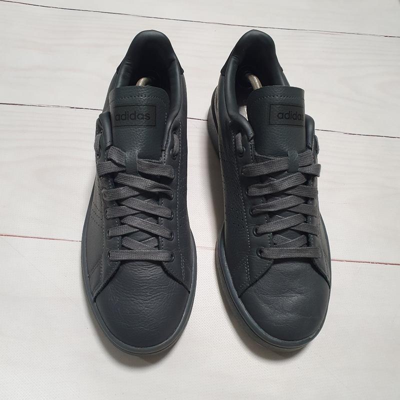 Лаконічний спортивний стиль на кожен день від Adidas Advantage . Ці кросівки з гладким шкіряним верхом. Класичні три смужки з боків виконані у вигляді перфорації, що покращує циркуляцію повітря і додає оригінальності екстер'єру взуття. Гумова підошва з технологією Cloudfoam забезпечує амортизаційний ефект при кожному кроці. Знімна устілка з ортоліта (спеціальний матеріал, який поглинає енергію удару) додатково покращує амортизаційні властивості взуття, тим самим знижує навантаження з суглобів і м'язів. Adidas Advantage відмінно доповнить спортивні та повсякденні образи. Стан новий Розмір 42,устілка 26,5 см Дуже мякенька шкіра,легенькі та зручні бігати на кожний день. Колір темно сірий,мокрий асфальт.