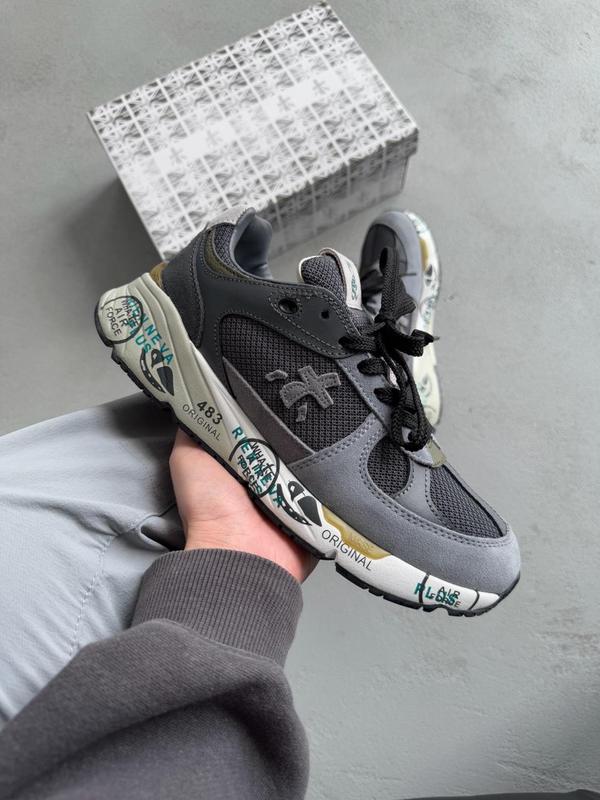 Premiata Uomo Mase Gray/Green 🔵Размеры: 40-45 sk 🔵Артикул: prm-0005 🔵Производитель: Вьетнам 🔵Кожа, текстиль, замша 🔵Брендовая коробка Premiata, упаковочная бумага