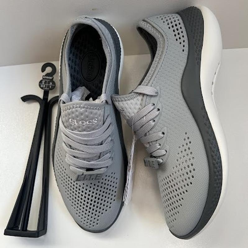 Мужские Crocs LiteRide Men's Pacer, оригинал из США (приобретенные с официального сайта). Страна производитель – Вьетнам. Размеры в наличии и размерная сетка: М6 (размер 38-39) 24 см М8 (размер 41-42) 26 см М12 (размер 45-46) 30 см (+100 грн.) до цены Инновационная линейка LiteRide в легендарном мире комфорта Crocs. Появление Crocs LiteRide навеяно развитием активного образа жизни. Стельки обуви этой коллекции изготовлены из революционного материала LiteRide, который стал следующим прорывом в области комфорта мирового класса. Благодаря эволюционному продукту обуви этой линейки стало на 40% более мягким и на 25% легче по сравнению с аналогами из традиционного материала Croslite. Изготовленные по новейшим технологиям, модели коллекции LiteRide обеспечивают превосходный комфорт и поддержку стопы в течение целого дня. Изготовленные по новейшим технологиям, модели коллекции LiteRide обеспечивают превосходный комфорт и поддержку стопы в течение целого дня. Мягкий и гибкий верх из материала Matlite Легкие и эластичные стельки из новейшего материала LiteRide Подошва из материала Croslite для поддержки и комфорта в течение целого дня Разработан для активного образа жизни