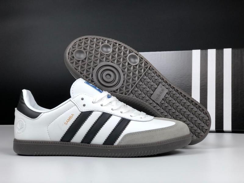 артикул 12483 белые с черным\темно серые сезон: демисезонные производитель: Вьетнам модель: Samba размеры: 36 37 38 39 40 41 42 43 44 45 материал: пресс кожа, замш, подошва полиуретан