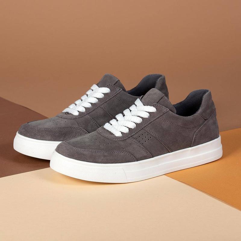 Мужские кроссовки серого цвета натуральная замша, замшевые кеды на утолщенной подошве 017