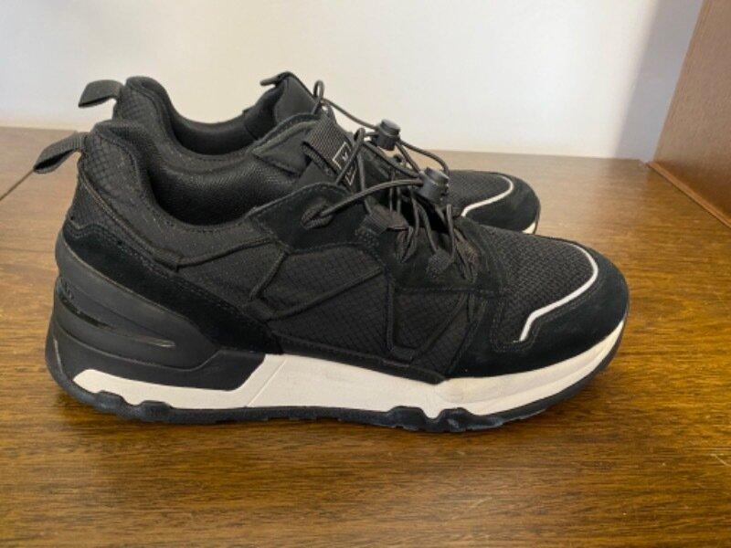 Классные кроссовки из замши и текстиля, размер 42 указано, пару раз обыли и бурерсли. Длина стельки- 27см + 0.5см загиб, ширина - 9.5см. Танкетка 4см и 1,5см.