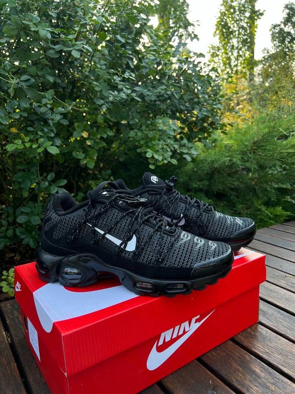 КРОССОВКИ NIKE AIR MAX PLUS UTILITY BLACK В наявності Виробник: Vietnam Колір : Чорний ; На шнурках та затяжках Розмір : 41(26cm) 42(26.5cm) 43(27.5) 44(28cm) 45(29cm)