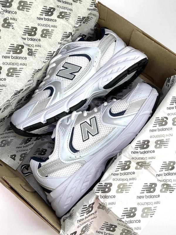 New Balance 530 (білі з темно/синім) Матеріал: Текстиль, шкіра Підошва: Піна Сезон: Весна, літо Коробка: New Balance Розміри: 36(23 см), 37(23,5 см), 38(24 см), 39(25 см), 40(25,5 см), 41(26 см), 42(26,5 см), 43(27,5 см), 44(28 см), 45(28,5 см) Виробник: В'єтнам Ціна: 2450 грн Якість ОРИГІНАЛУ