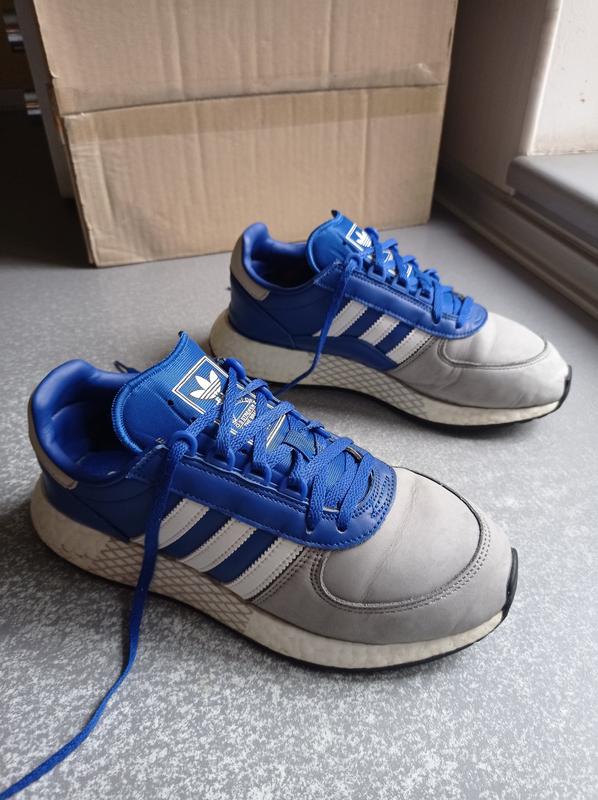Кросівки Adidas Marathon Tech, оригінал, дуже гарний стан, сірі з синім і білим, високоякісна еко шкіра, класична шнурівка, оригінальні вологопоглинаючі ортопедичні устілки, підошва Boots, дуже красиво виглядають на нозі, дуже легкі м'які та зручні, прекрасно підійдуть для занять спортом та повсякденної носки, унісекс, розмір EU 39 1/3, US 6.5, UK 6, довжина устілки 24.5 см, повна довжина 25 см.