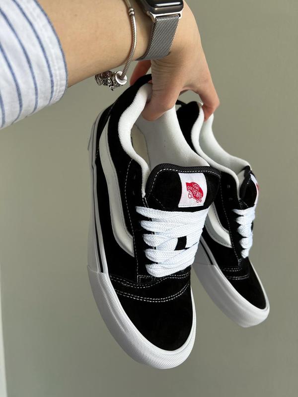 Vans Knu Skool — это современное переосмысление классических скейтерских кроссовок 90-х годов, созданное для тех, кто ценит стиль, комфорт и надежность. Материал: Верх кроссовок изготовлен из премиальной замши, что обеспечивает прочность и долговечность, сохраняя при этом мягкость и эластичность. Прошивка: Усиленная двойная прошивка в зонах наибольшей нагрузки гарантирует повышенную устойчивость к износу и разрывам, делая обувь идеальной для активного использования. Стелька: Модель оснащена комфортной стелькой с технологией PopCush, которая обеспечивает превосходную амортизацию и снижает нагрузку на стопу во время длительного ношения или катания на скейте. Дизайн: Отличительной чертой является объемный язычок, толстые шнурки и фирменная волнистая полоска Vans на боку. Силуэт имеет легкий ретро-стиль, который отлично сочетается как со спортивными, так и с повседневными образами. Способ использования: Подходит для скейтбординга, прогулок по городу и активной повседневной носки. Главные преимущества: Надежная фиксация стопы благодаря плотной конструкции; Эффективная амортизация для уменьшения усталости ног; Высокая износостойкость благодаря прочным материалам и прошивке; Стильный ретро-дизайн, что остается актуальным в современной моде.