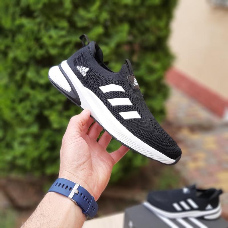 👟 чоловічі кросівки adidas slip-on lite flow тапки мокасіни сліпони чорні з білим 👟