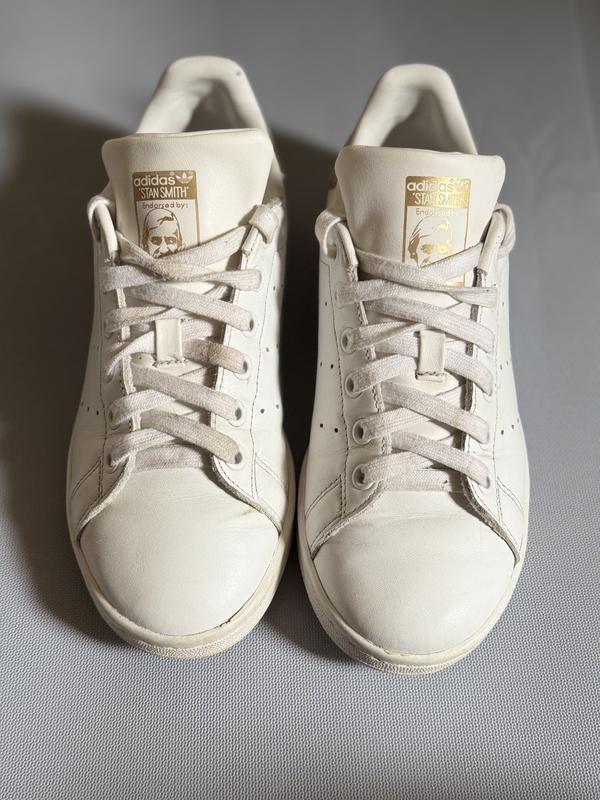 Культова модель Adidas. Шкіряні тенісні кросівки Stan Smith з золотистим декором. Розмір 37