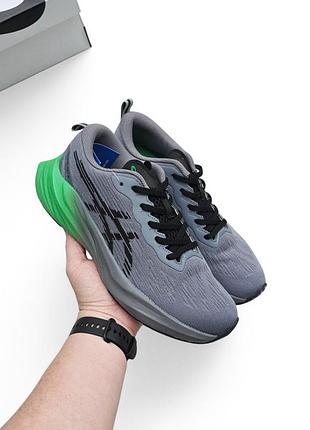 Мужские кроссовки asics novablast 3 серые с зеленым🔥