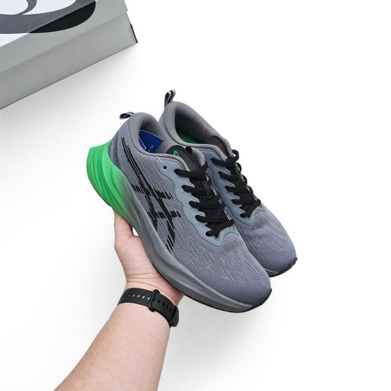 Новинка👕 лето Арт 1142 🔥Мужские кроссовки ASICS Novablast 3 серые с зеленым🔥 Материал: текстиль Подошва: пена/резина Сезон: весна/лето Производитель: Вьетнам Размеры: 41(26см), 42(26,5см), 43(27,5см), 44(28см), 45(29см)) +фирм коробка